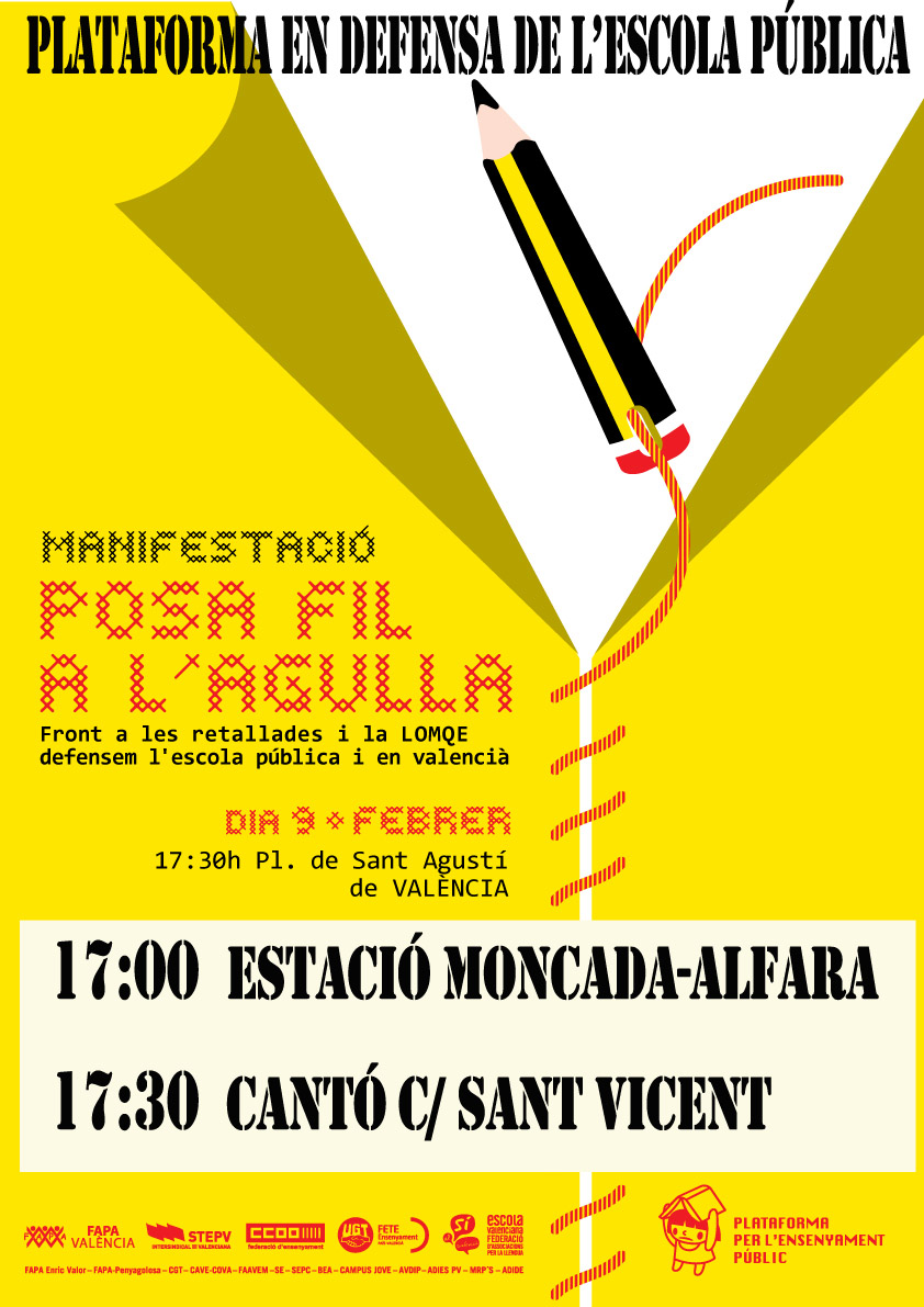 «Front a les retallades i la LOMQE defensem l'escola pública. Hem quedat A les 17:00 en la parada de metro